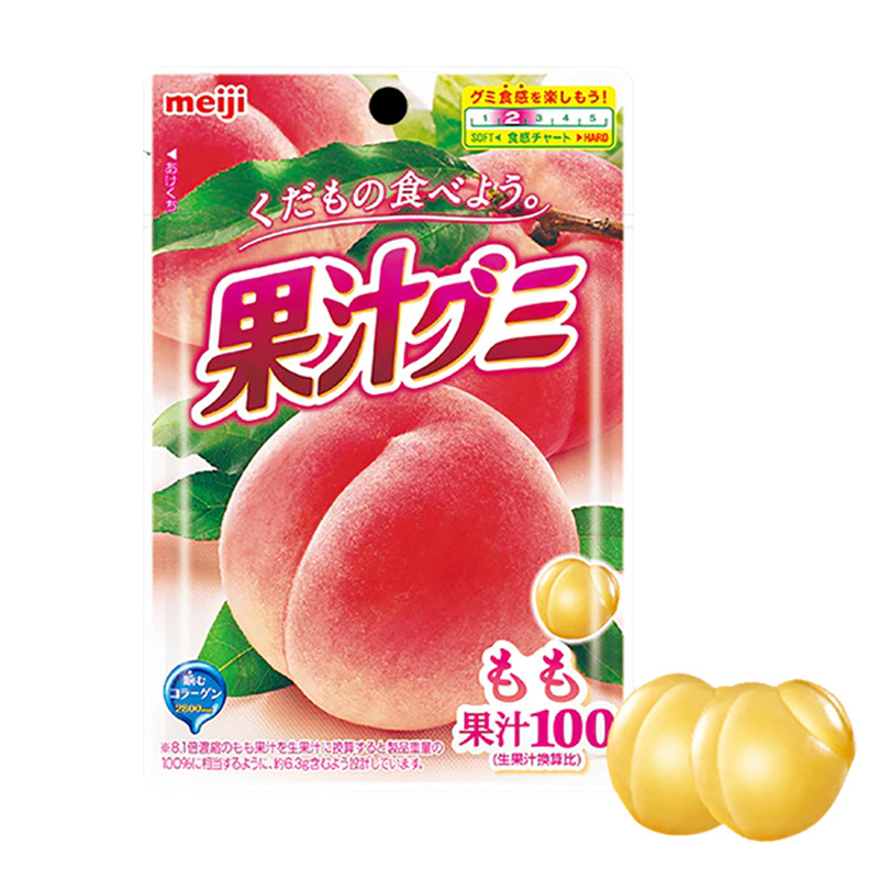 Meiji white peach fruit juice soft candy 51g